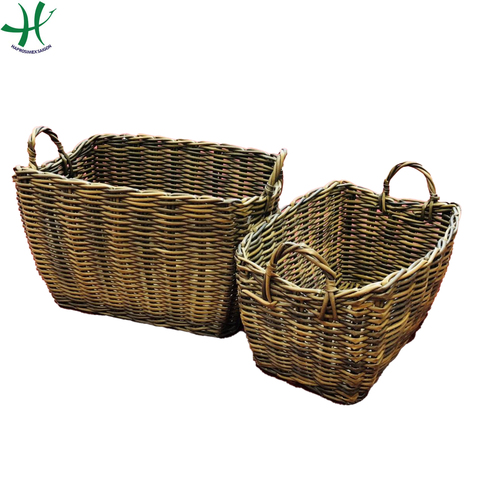 2020 Household Bamboo Water Hyacinth Woven Storage Baskets Kitchen Home Decor with Laundry Organizer Handles Boxed Packaging