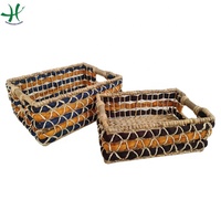 Handmade Eco-Friendly Set of 2 Rectangle Water Hyacinth Storage Baskets with Handles Foldable Design for Modern Home Use
